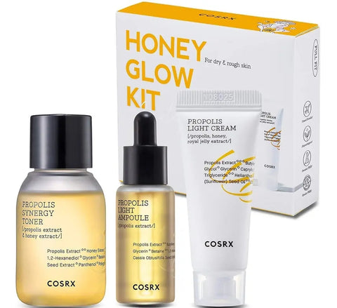 - Propolis-infused Honey Glow Set: Hydrating, anti- aging, and boosts radiance. Absorbs effotlessly onto skin to bring out natural glow from your skin.